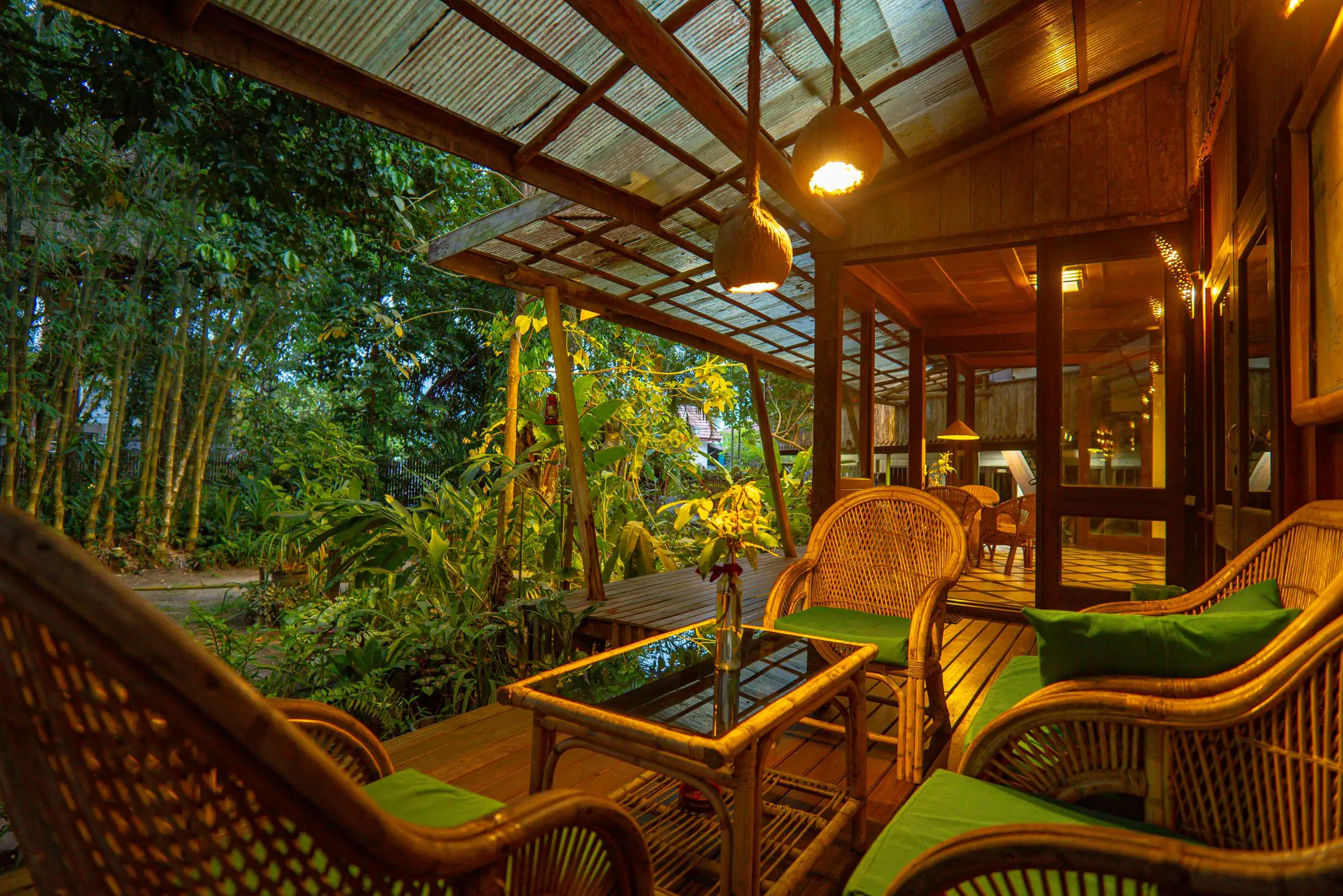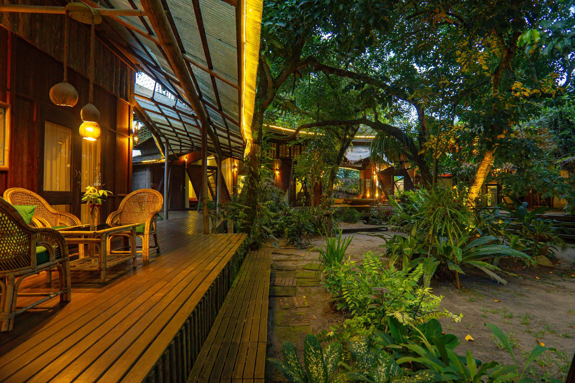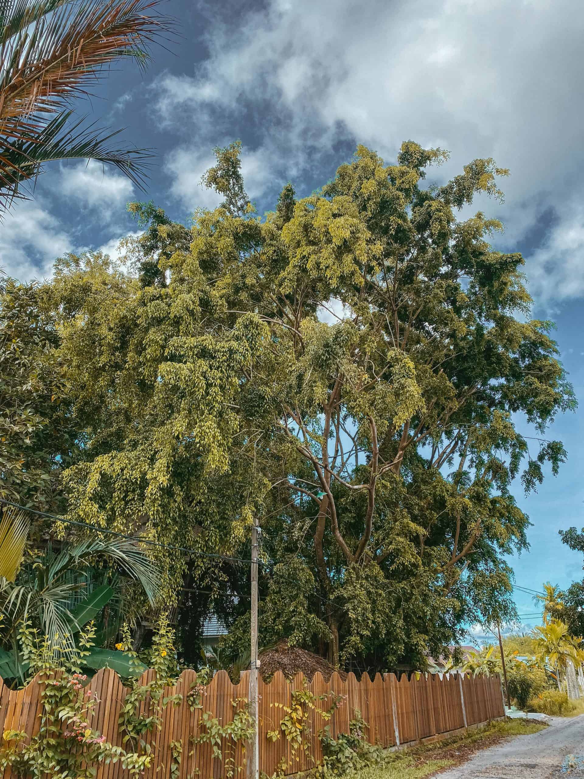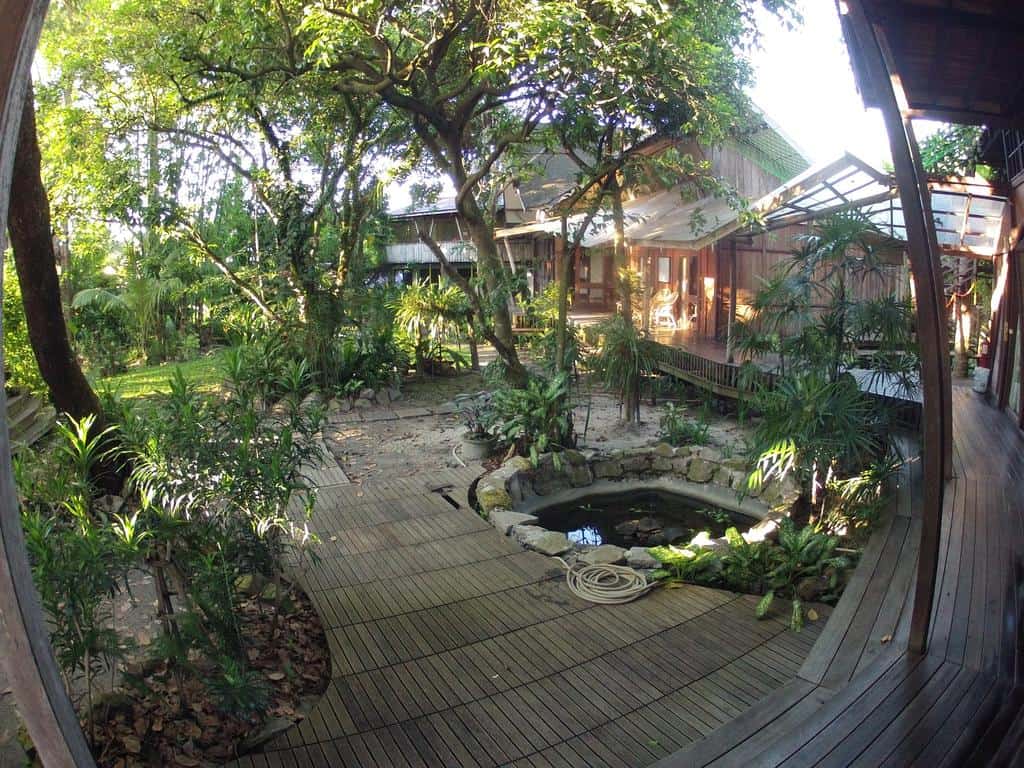 A large rambutan tree (Nephelium lappaceum) stands at the center of the property, and most guest room doors face this beautiful tree. A variety of different trees grow on our small property, including many different fruit trees, sago palms (Metroxylon sagu), cinnamon (Cinnamomum burmannii), acacia (Acacia mangium), ficus (Ficus benyamina), ulin (Eusideroxylon zwageri), durian (Durian zibethinus), agarwood (Aquilaria sinensis), rubber trees (Hevea brasiliensis), palms, and many more.