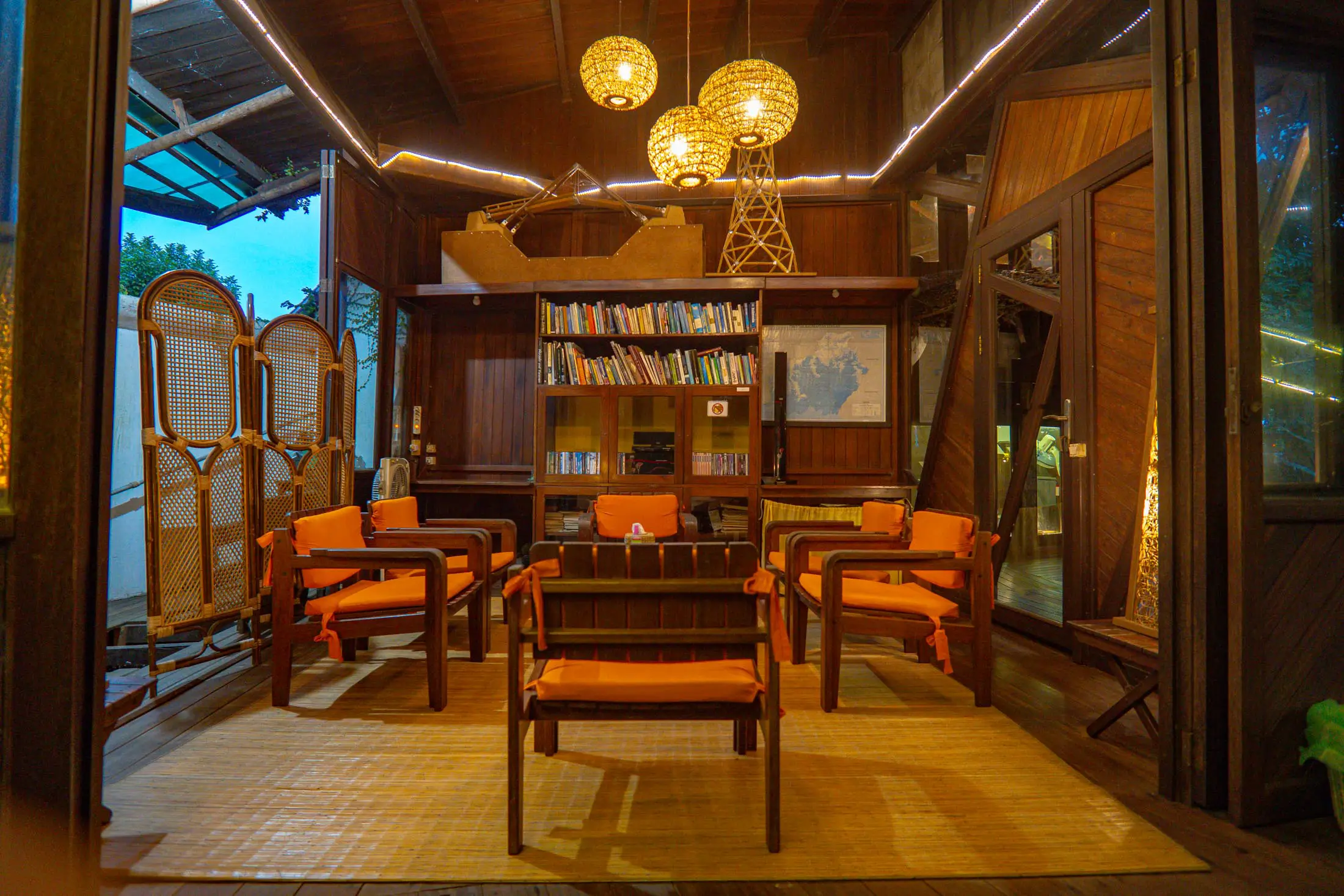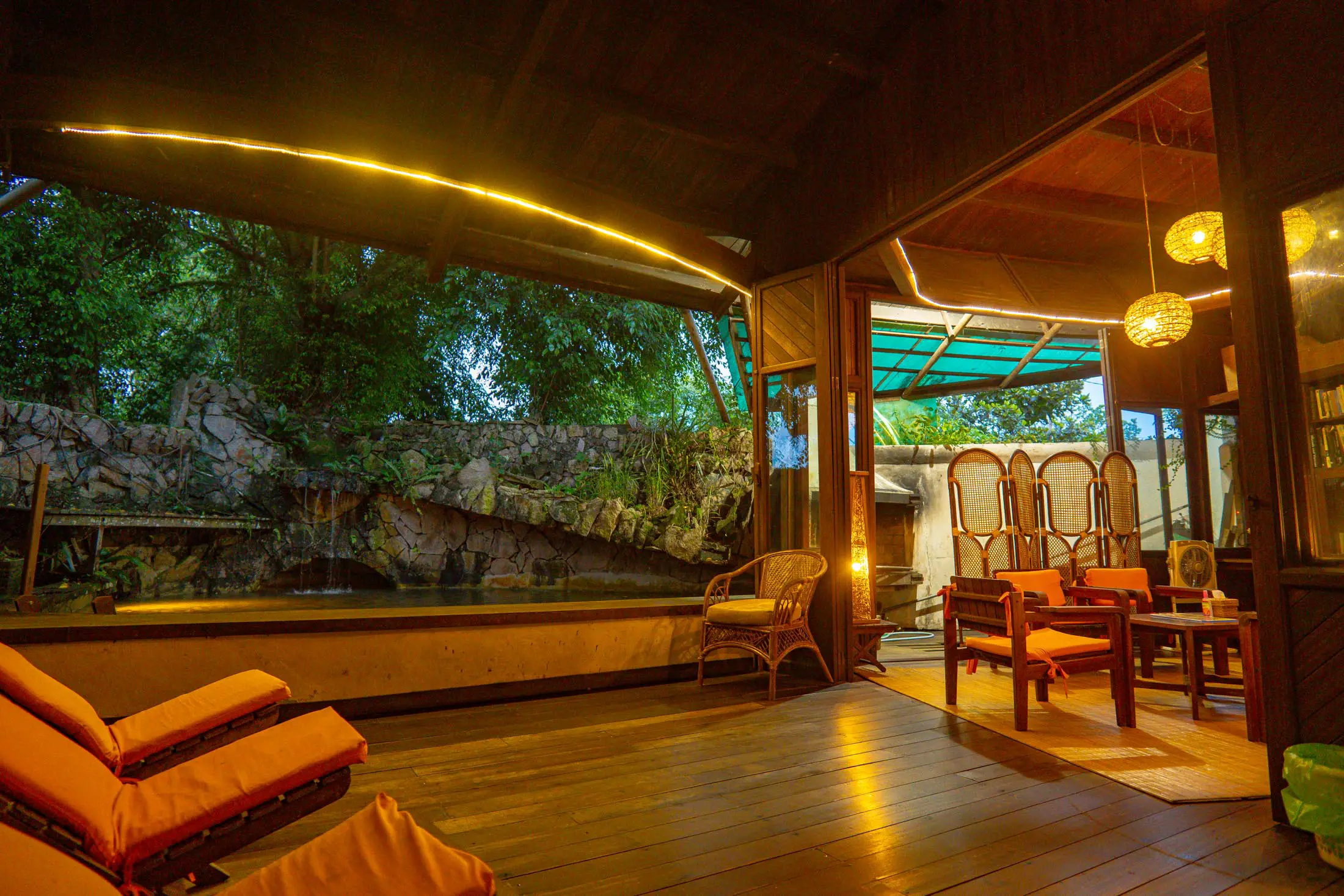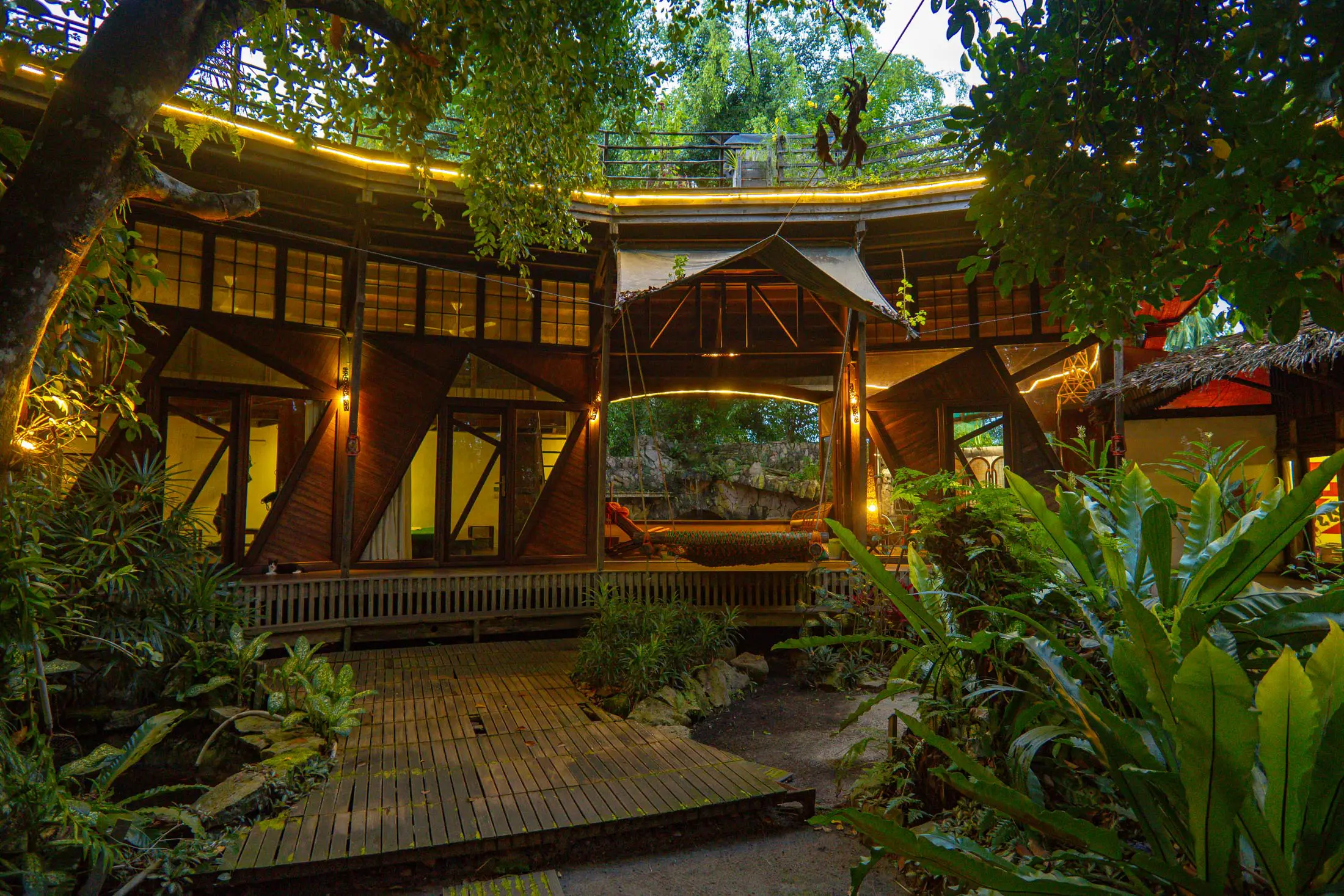 The covered gallery on the ground floor leads to three standard double rooms with their unique wooden architecture and a curved grass roof for a naturally cool climate. The public lounge with a barbecue area and natural swimming pool leads to the special snail house, “Rumah Keong.” But that’s not all! A naturally curved bamboo bridge leads to the exotic tree house. The tree house epitomizes the tropical lifestyle and is generally very popular with guests.