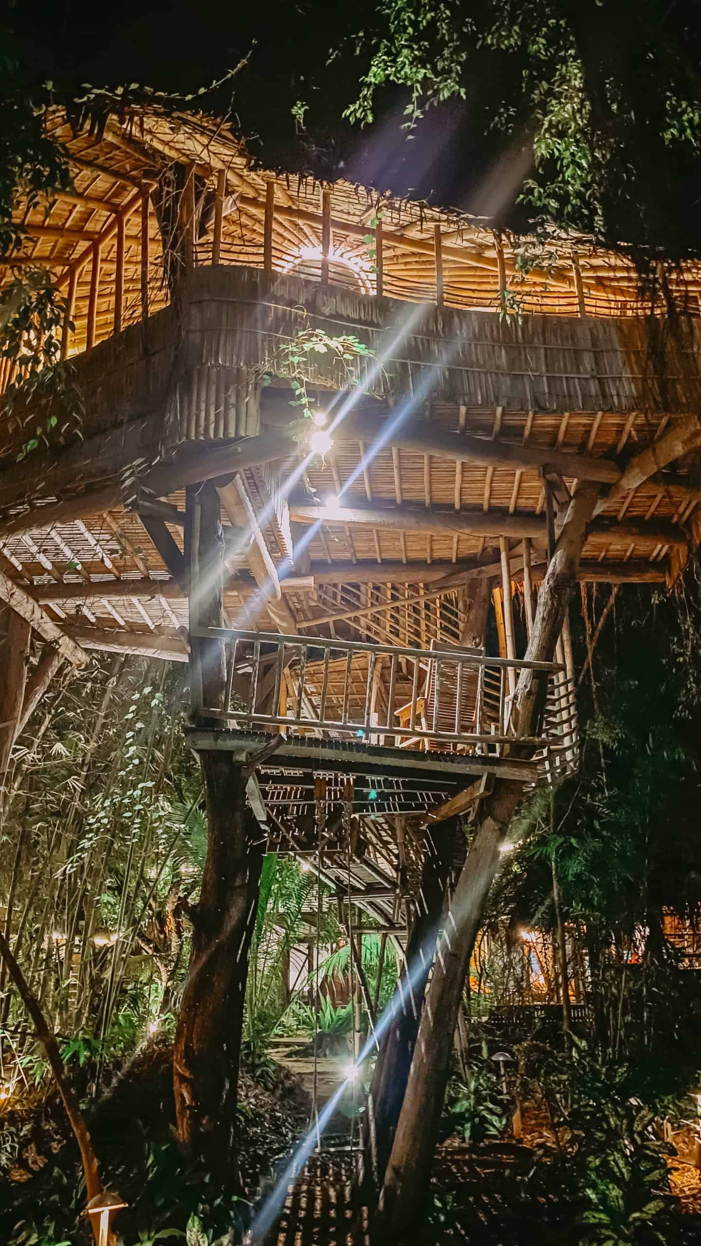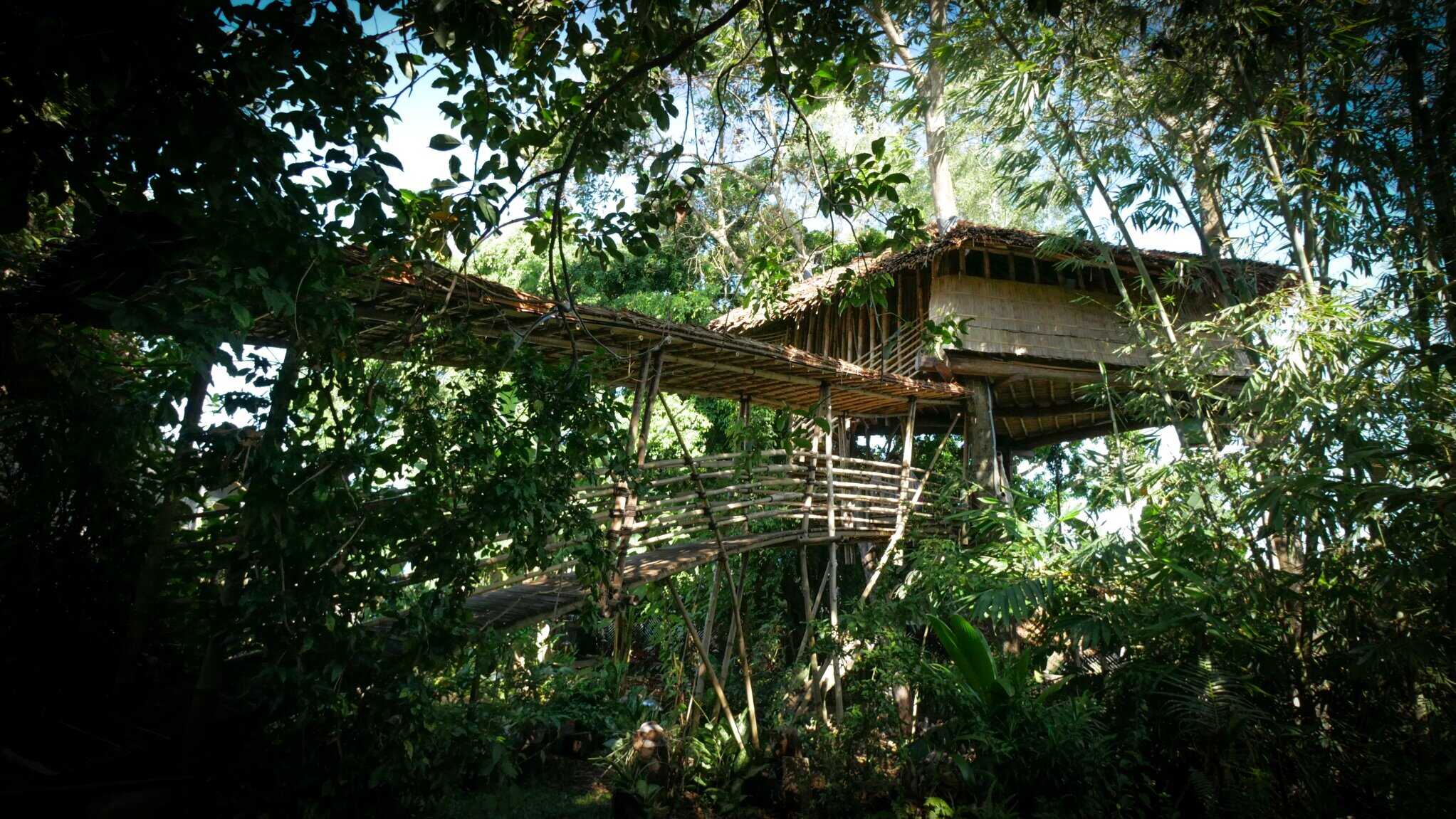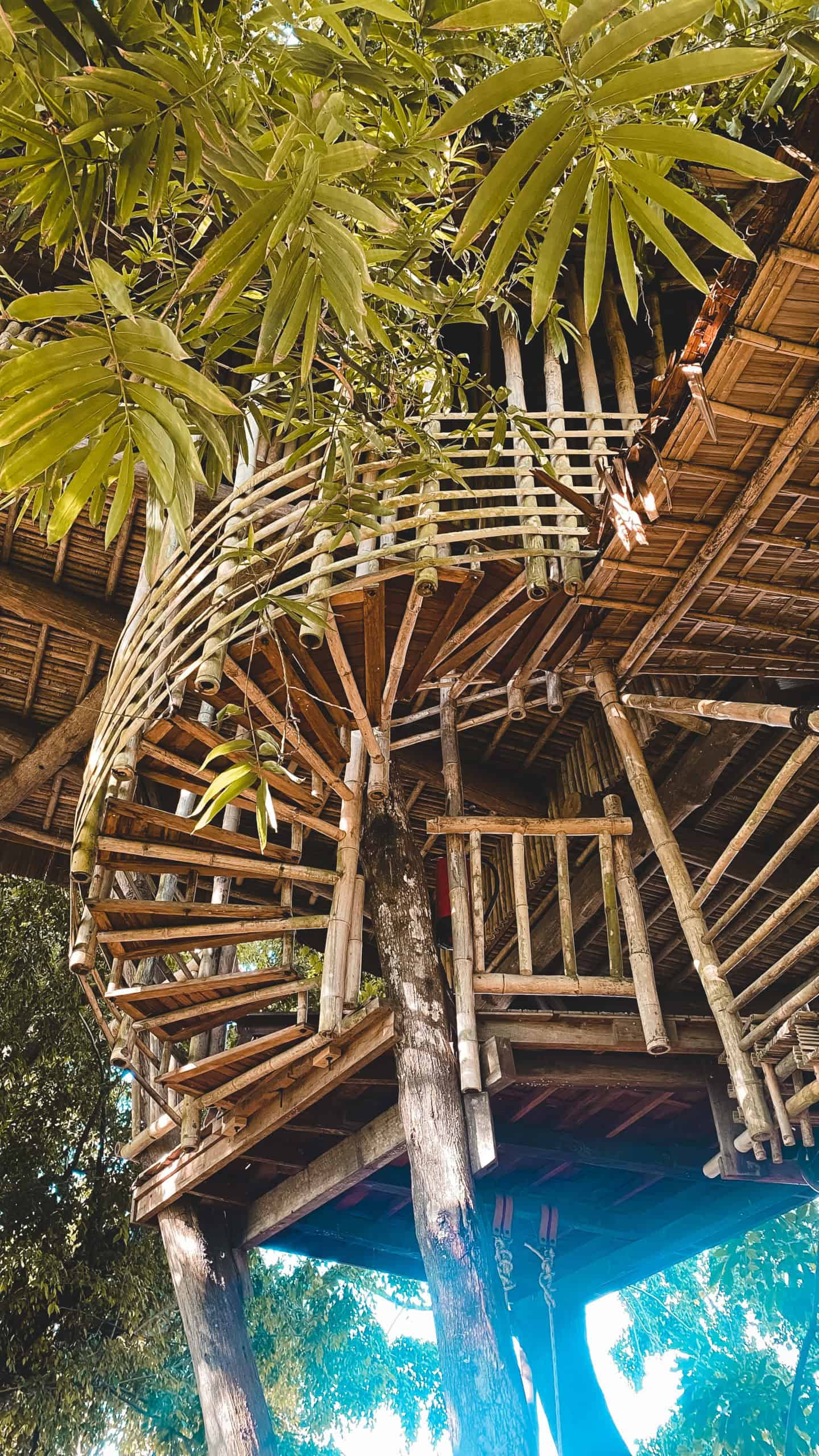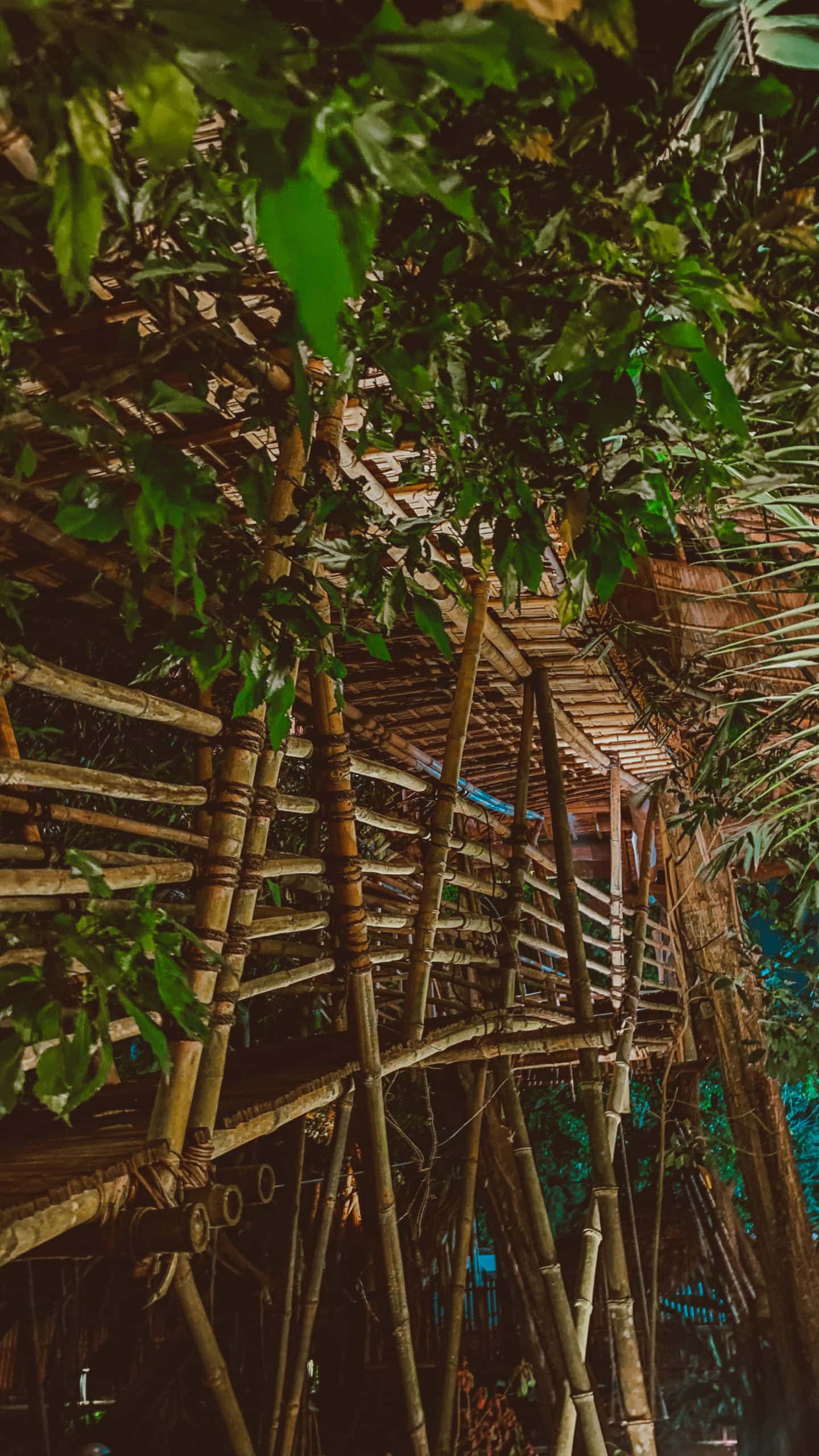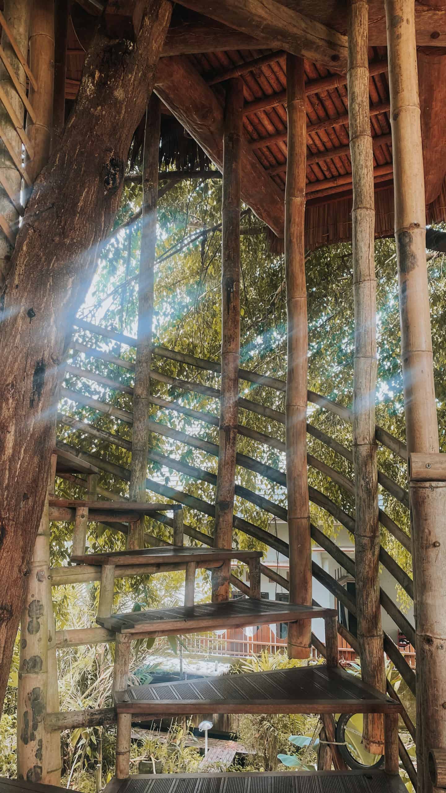 The whole Treehouse is made of bamboo and constructed into a total of five acacia trees who can slightly move in the wind if there is a storm coming up.