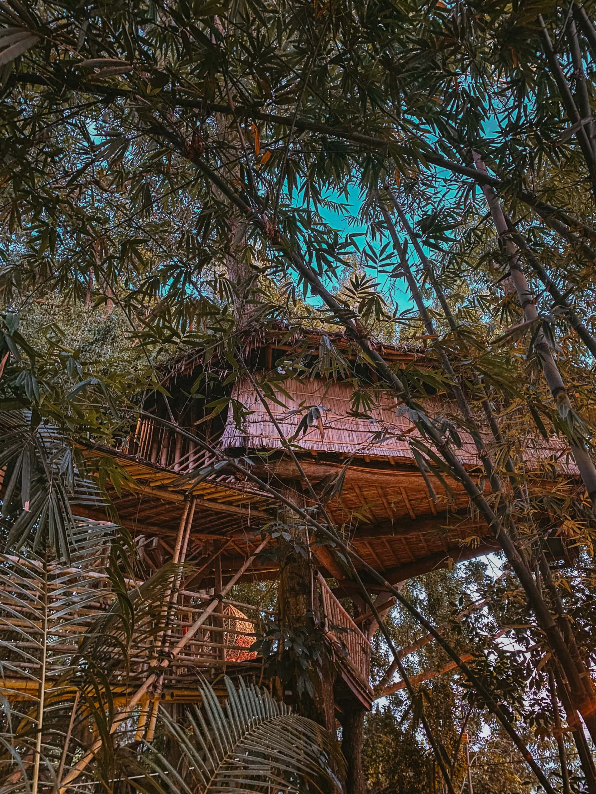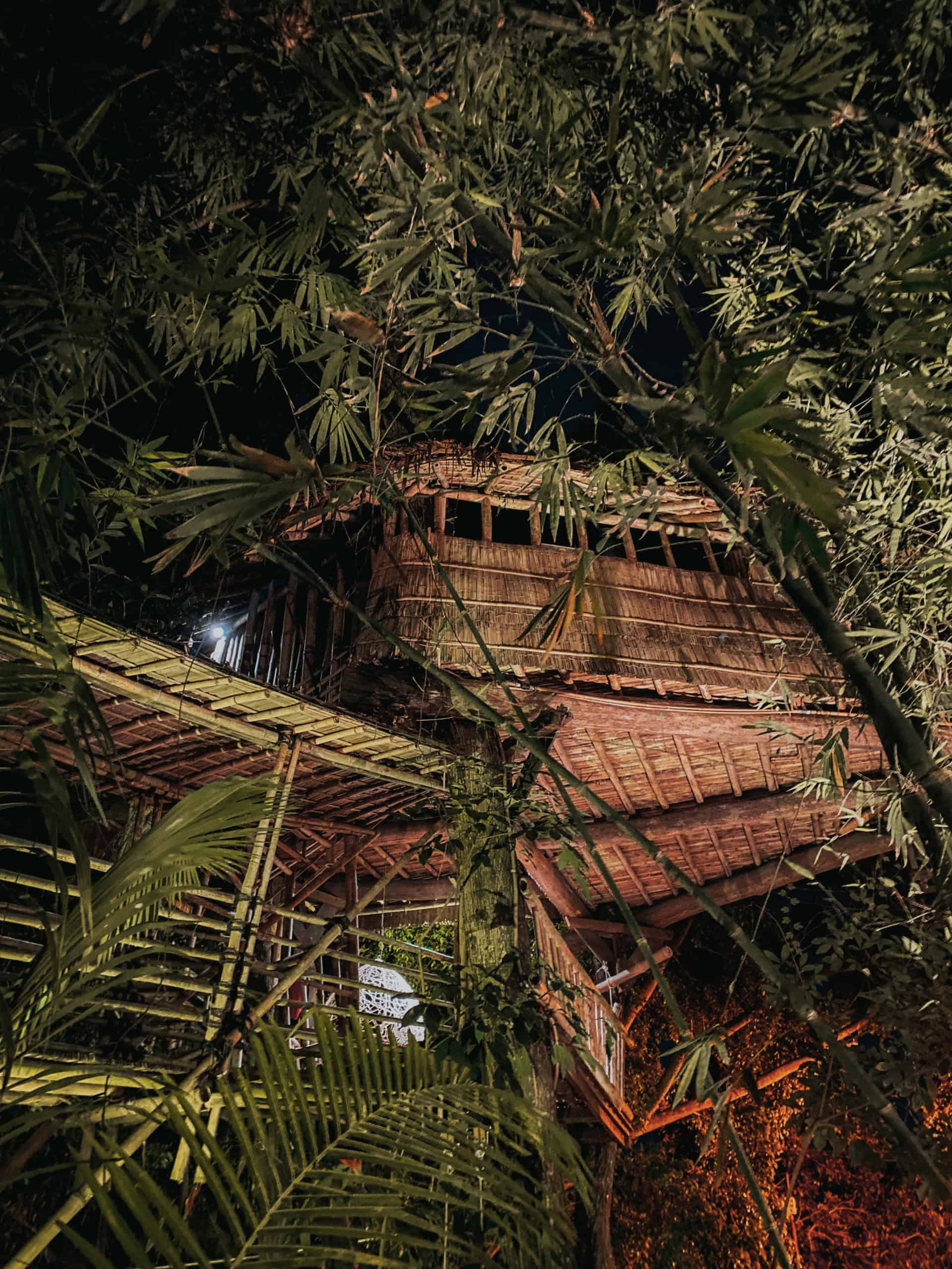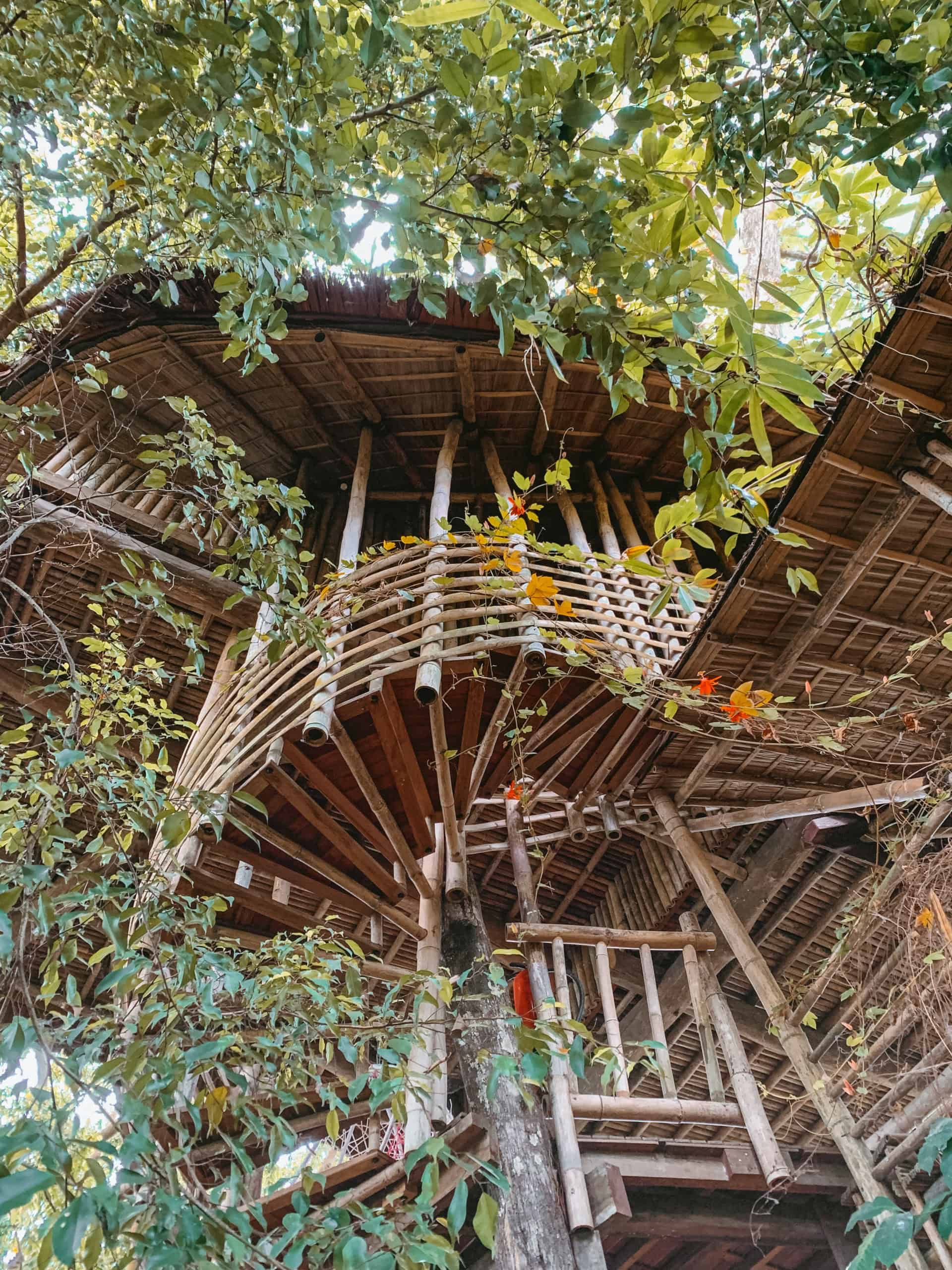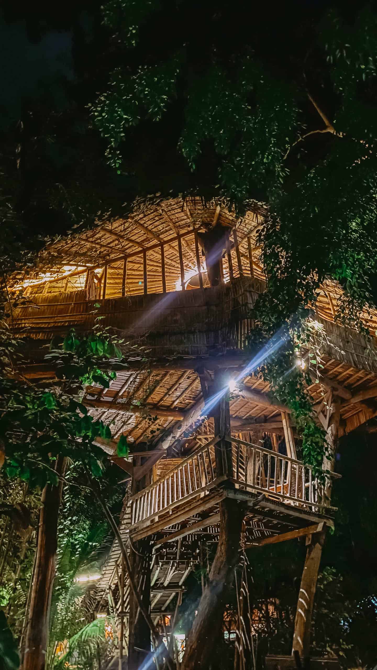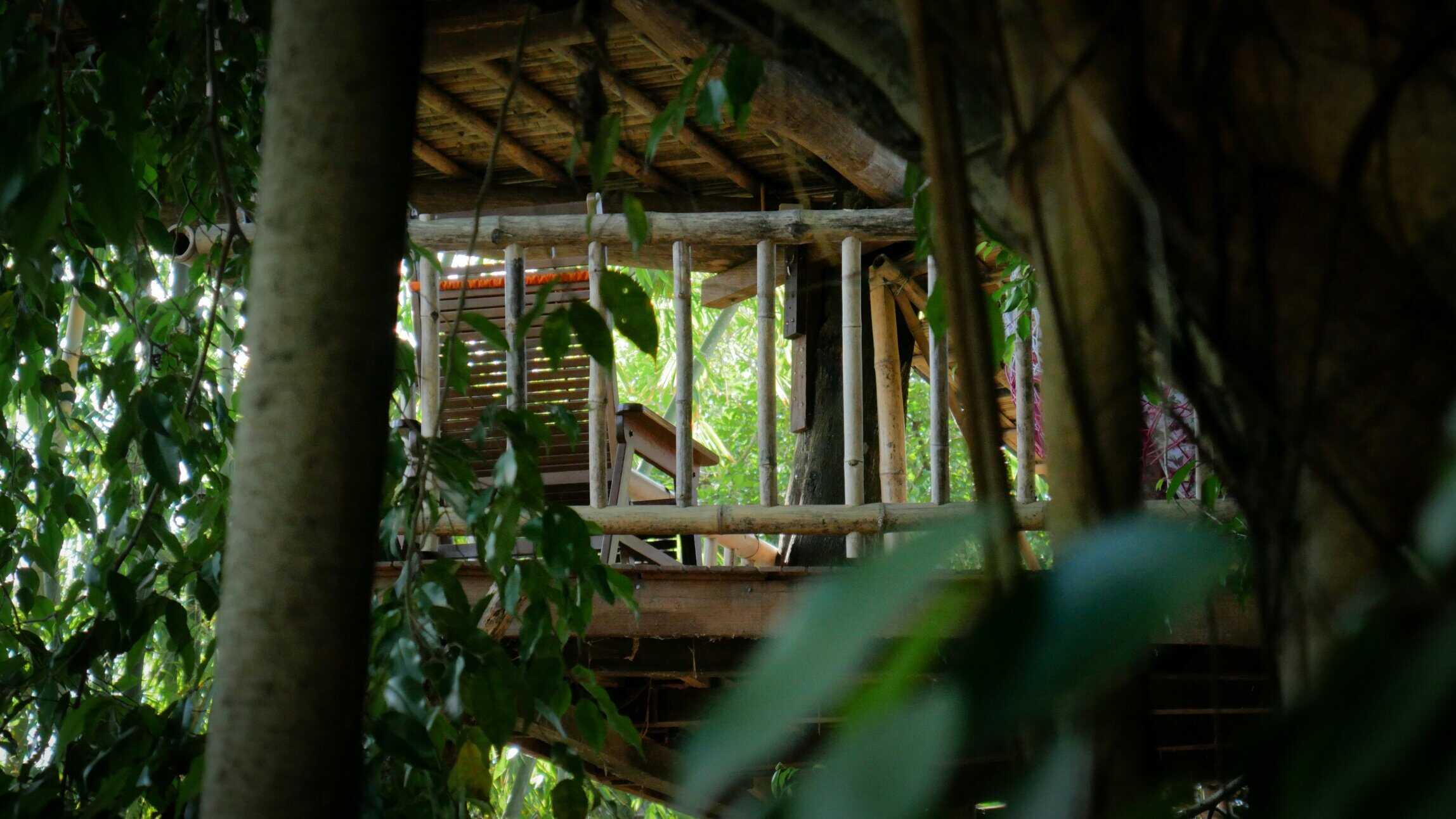 The whole Treehouse is made of bamboo and constructed into a total of five acacia trees who can slightly move in the wind if there is a storm coming up.