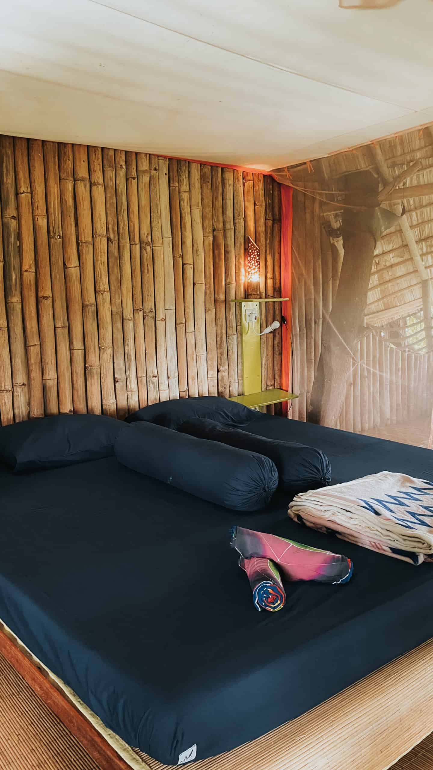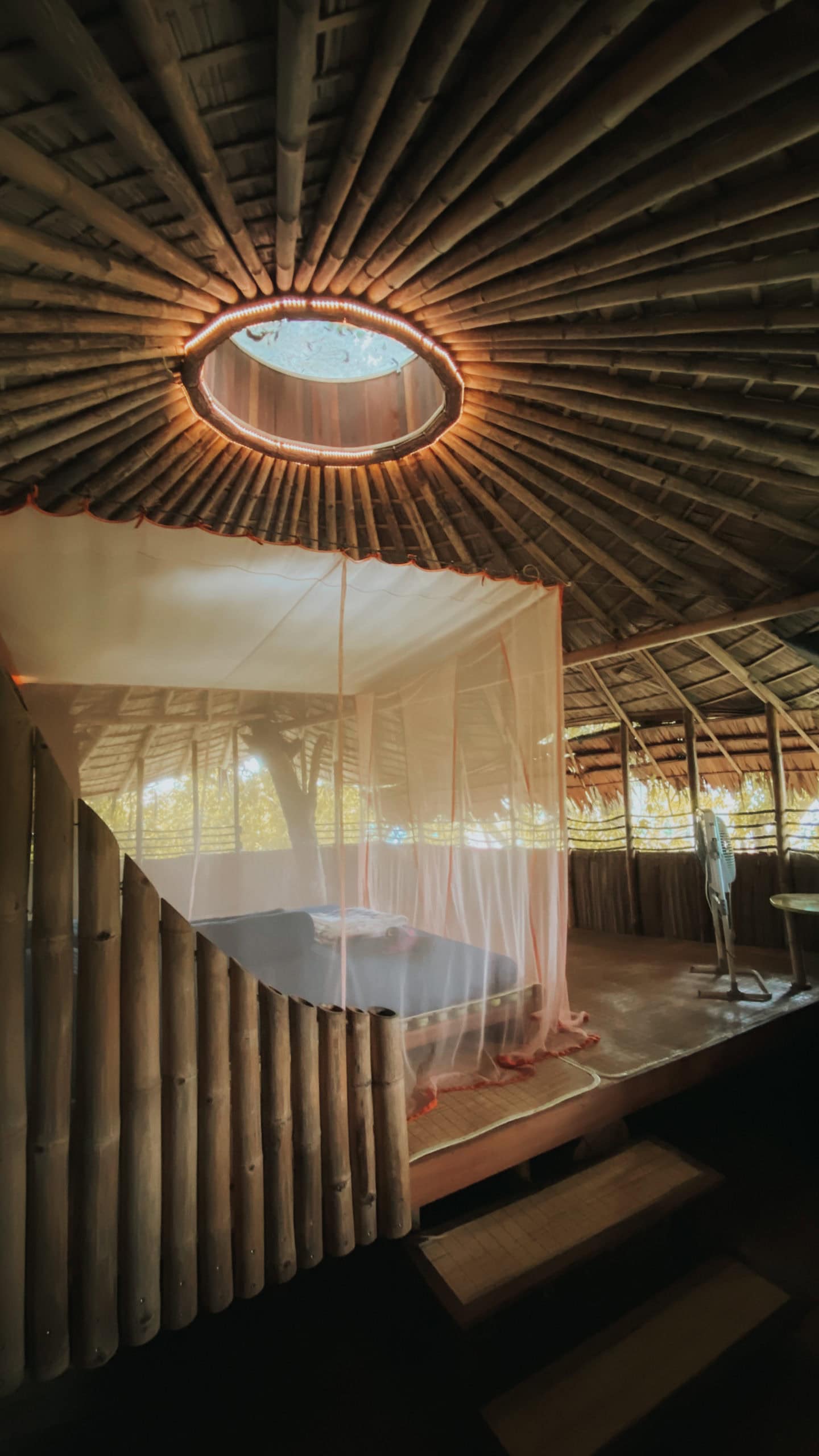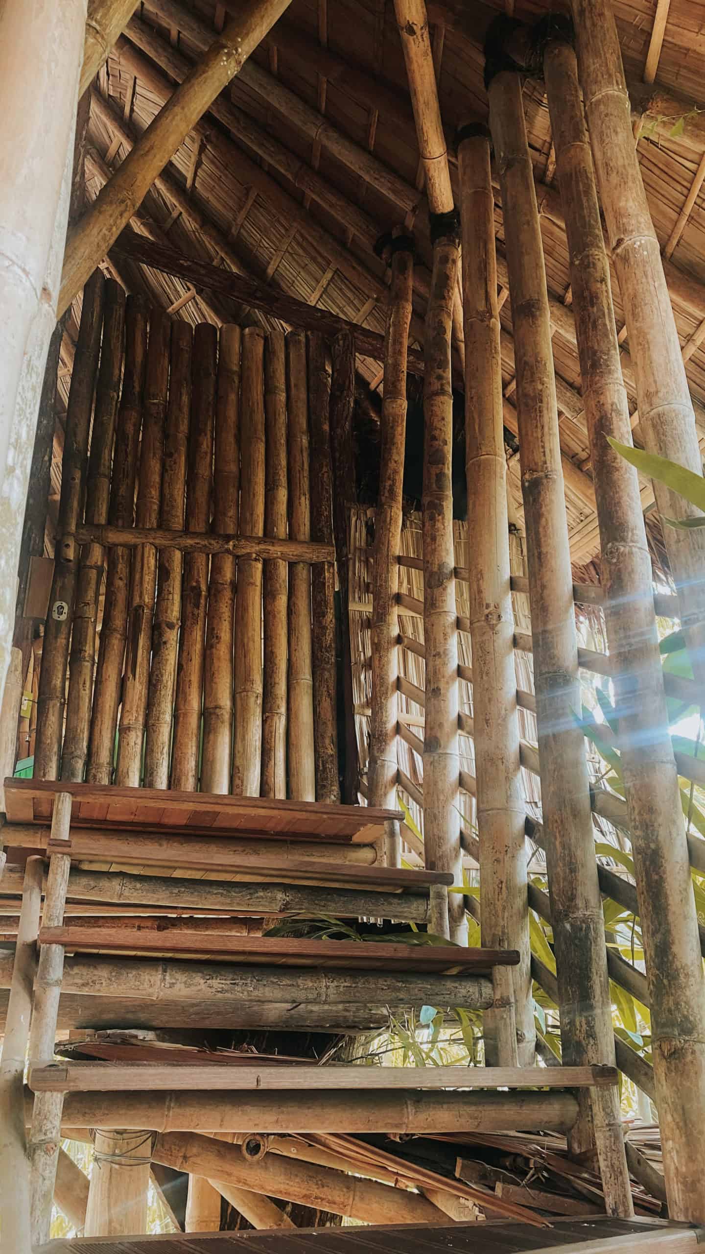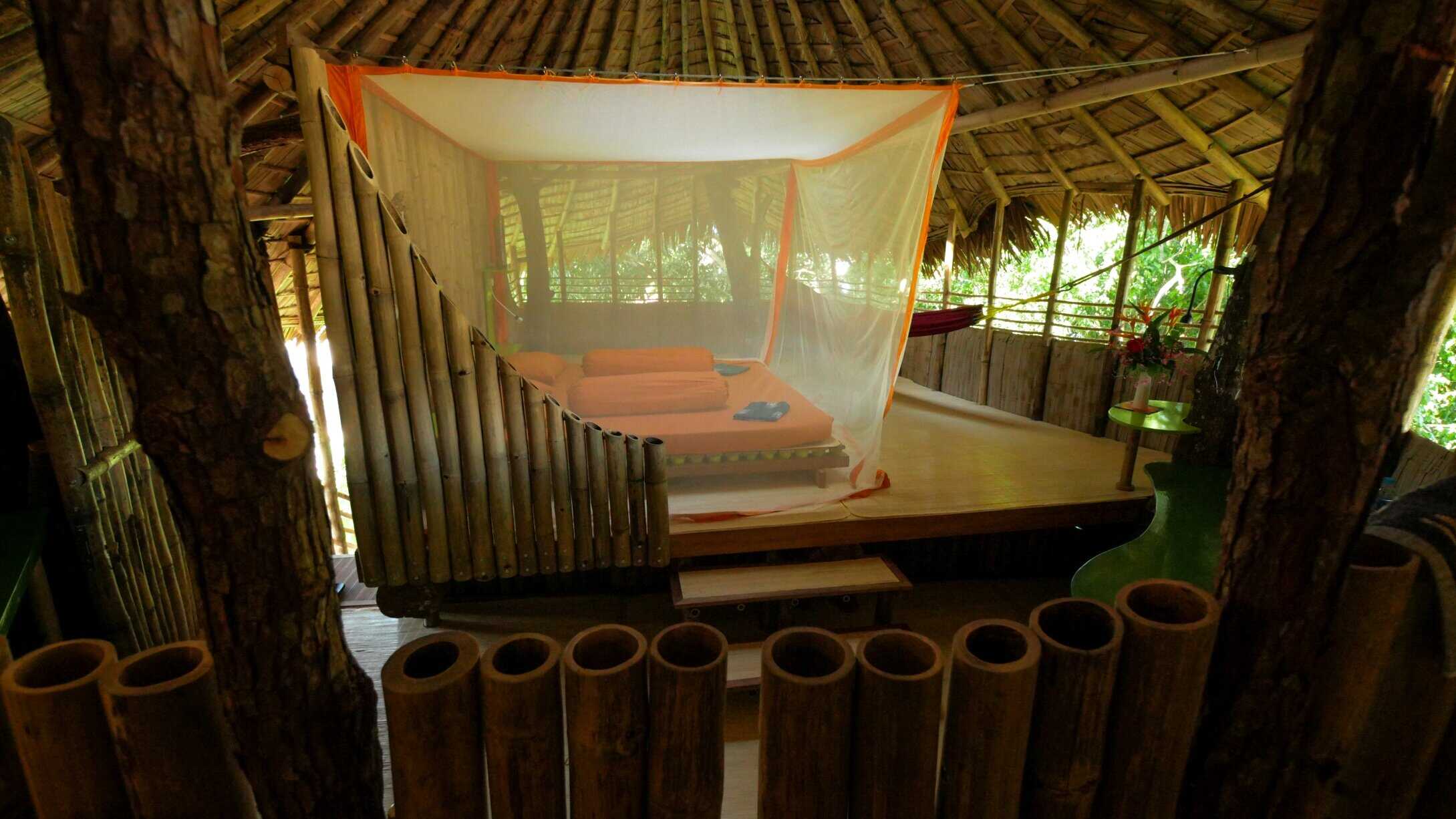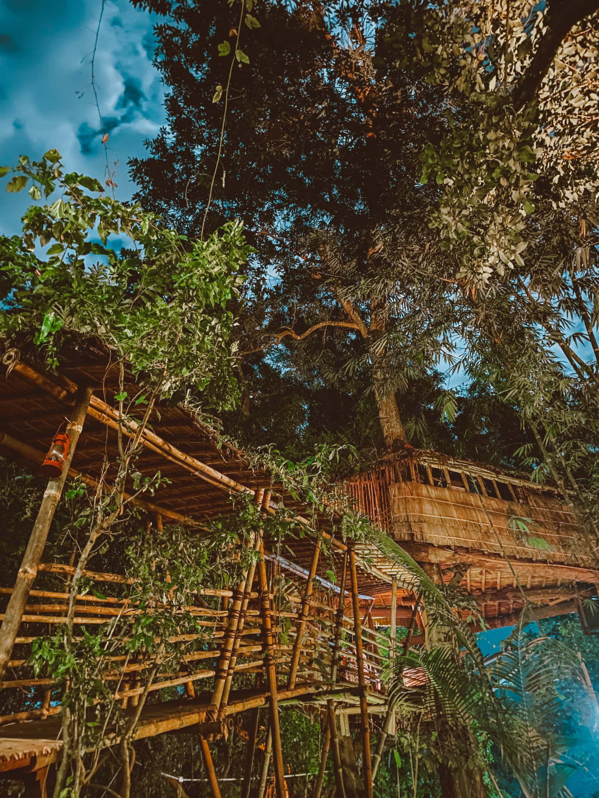 The whole Treehouse is made of bamboo and constructed into a total of five acacia trees who can slightly move in the wind if there is a storm coming up.