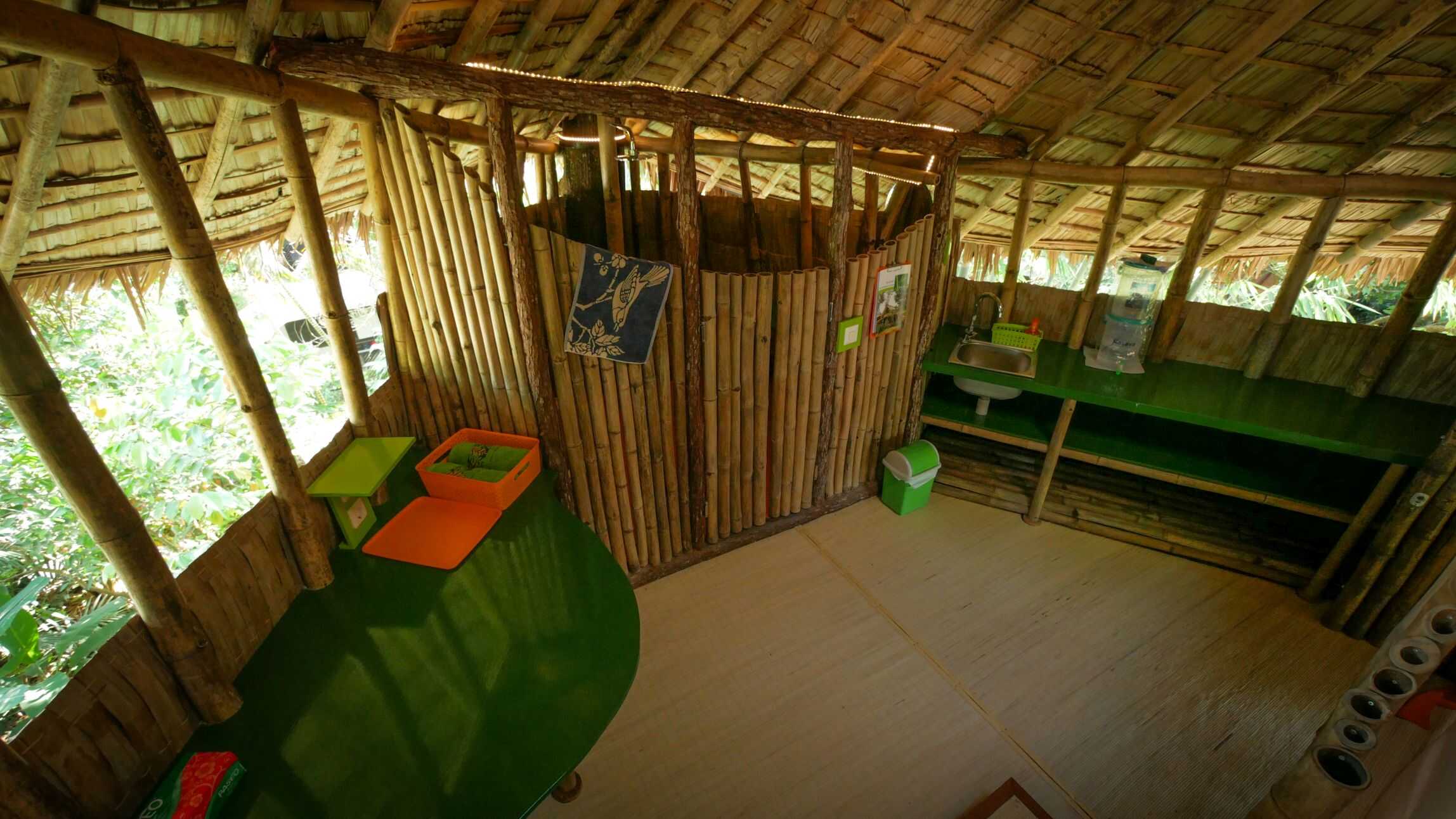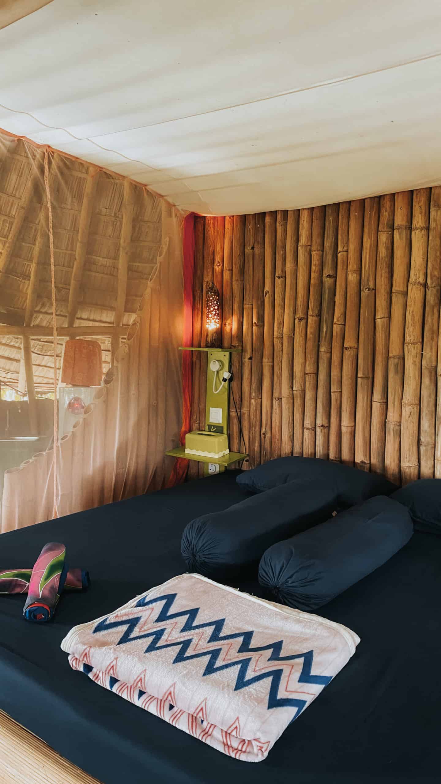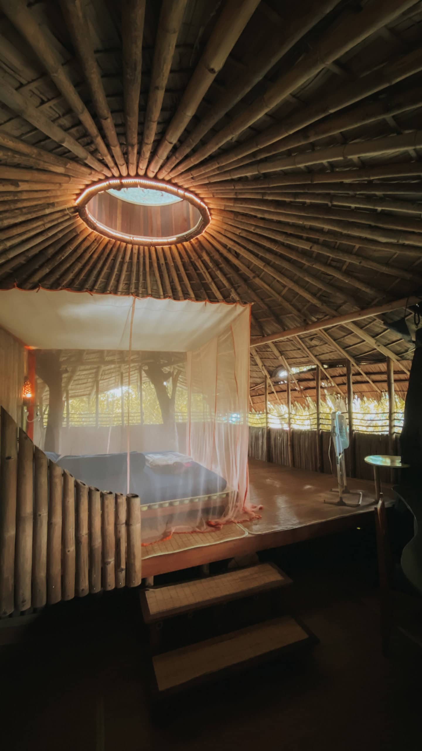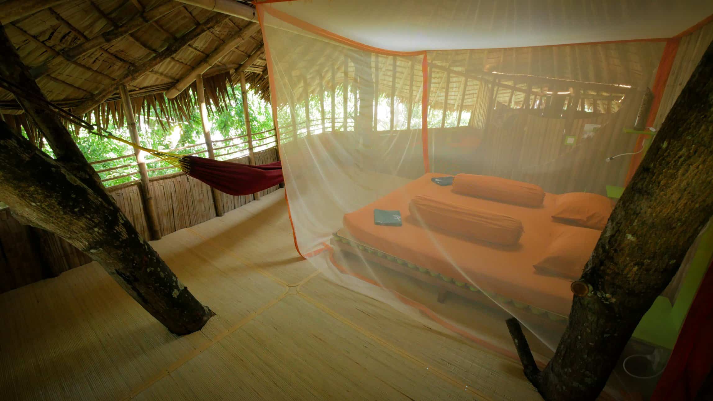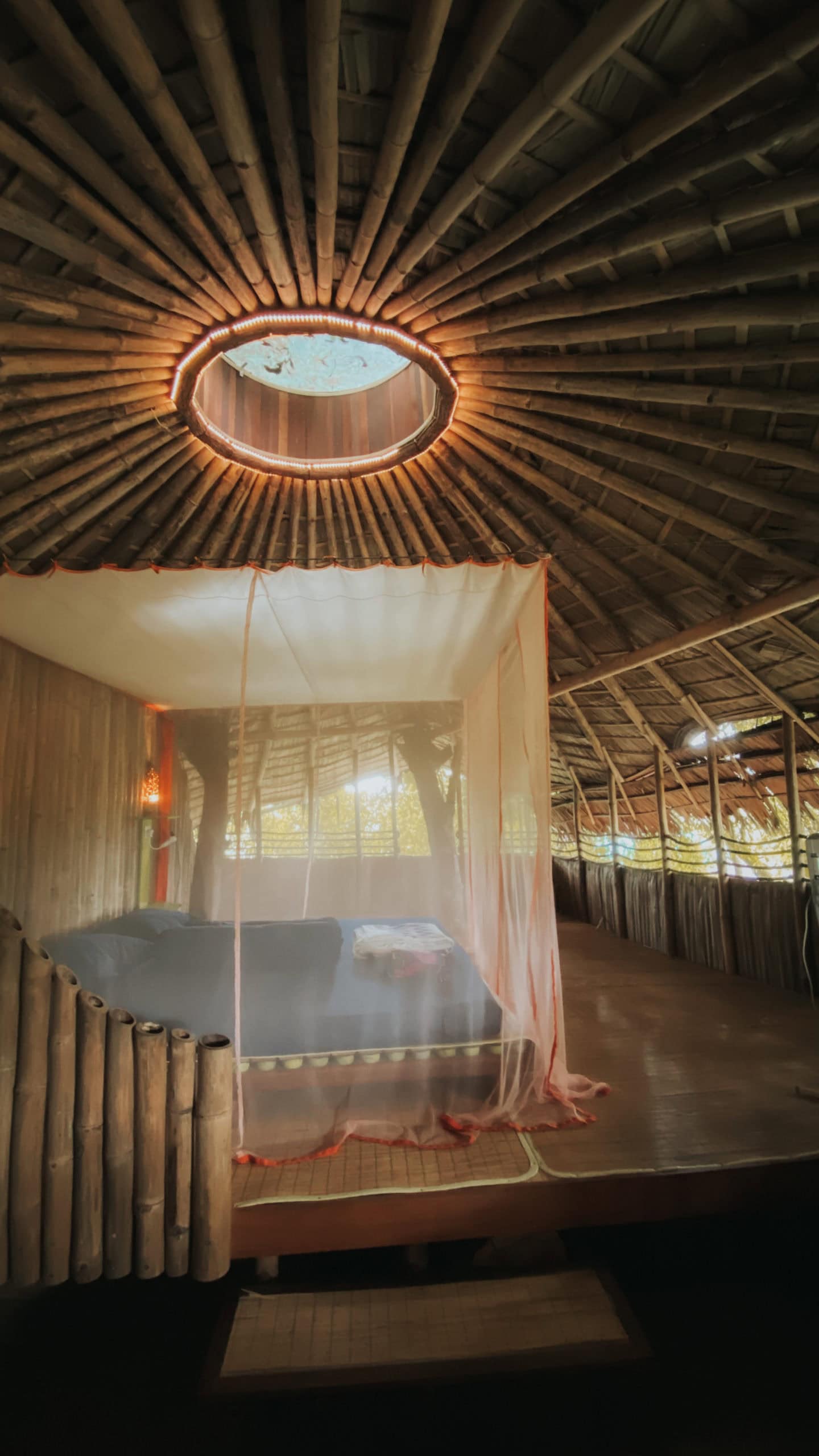 The whole Treehouse is made of bamboo and constructed into a total of five acacia trees who can slightly move in the wind if there is a storm coming up.