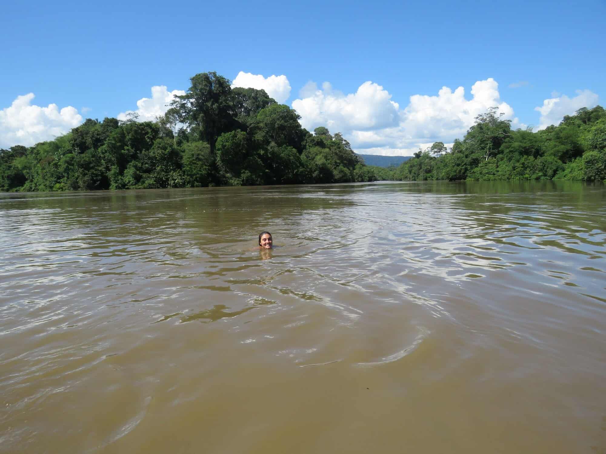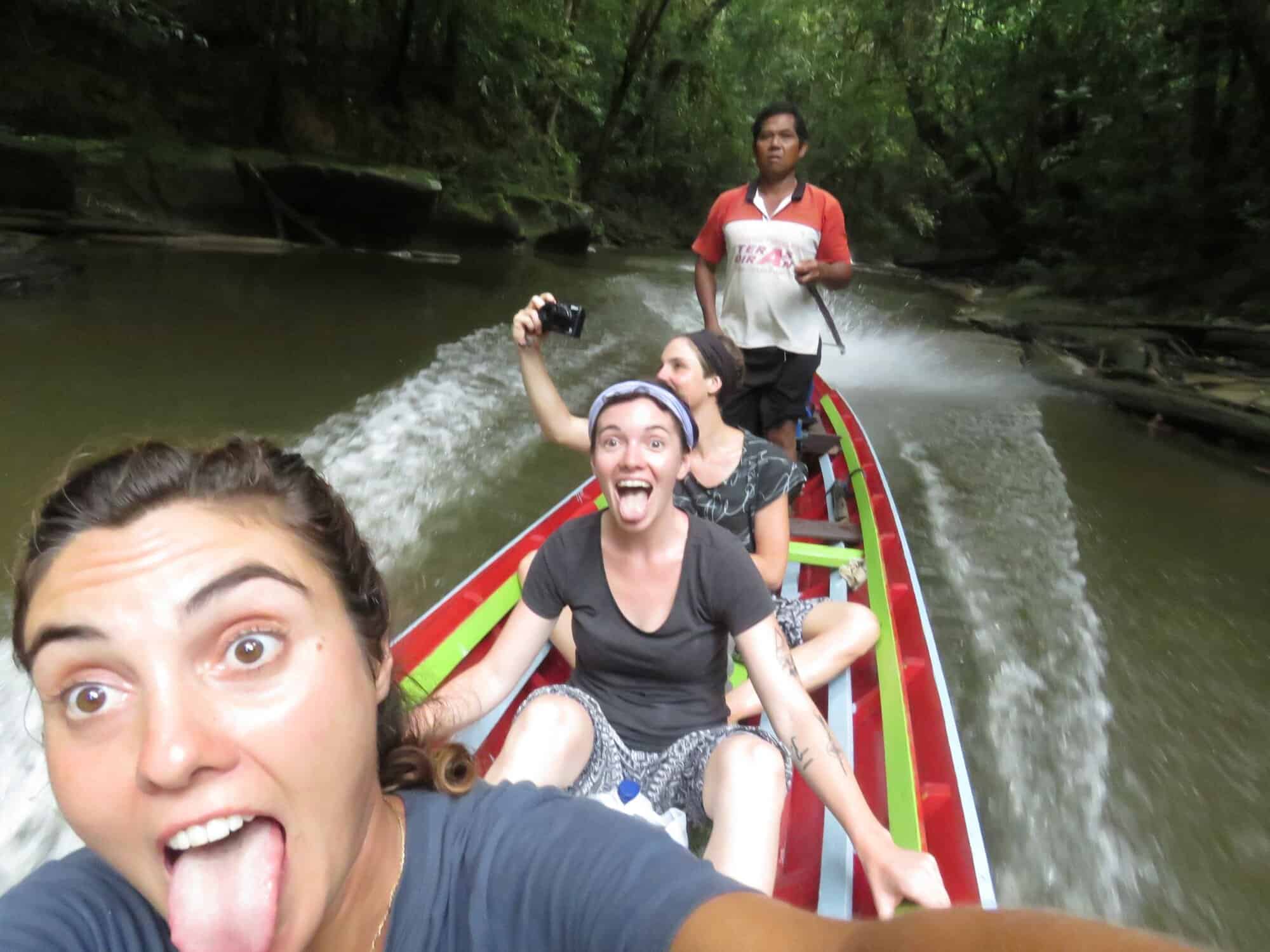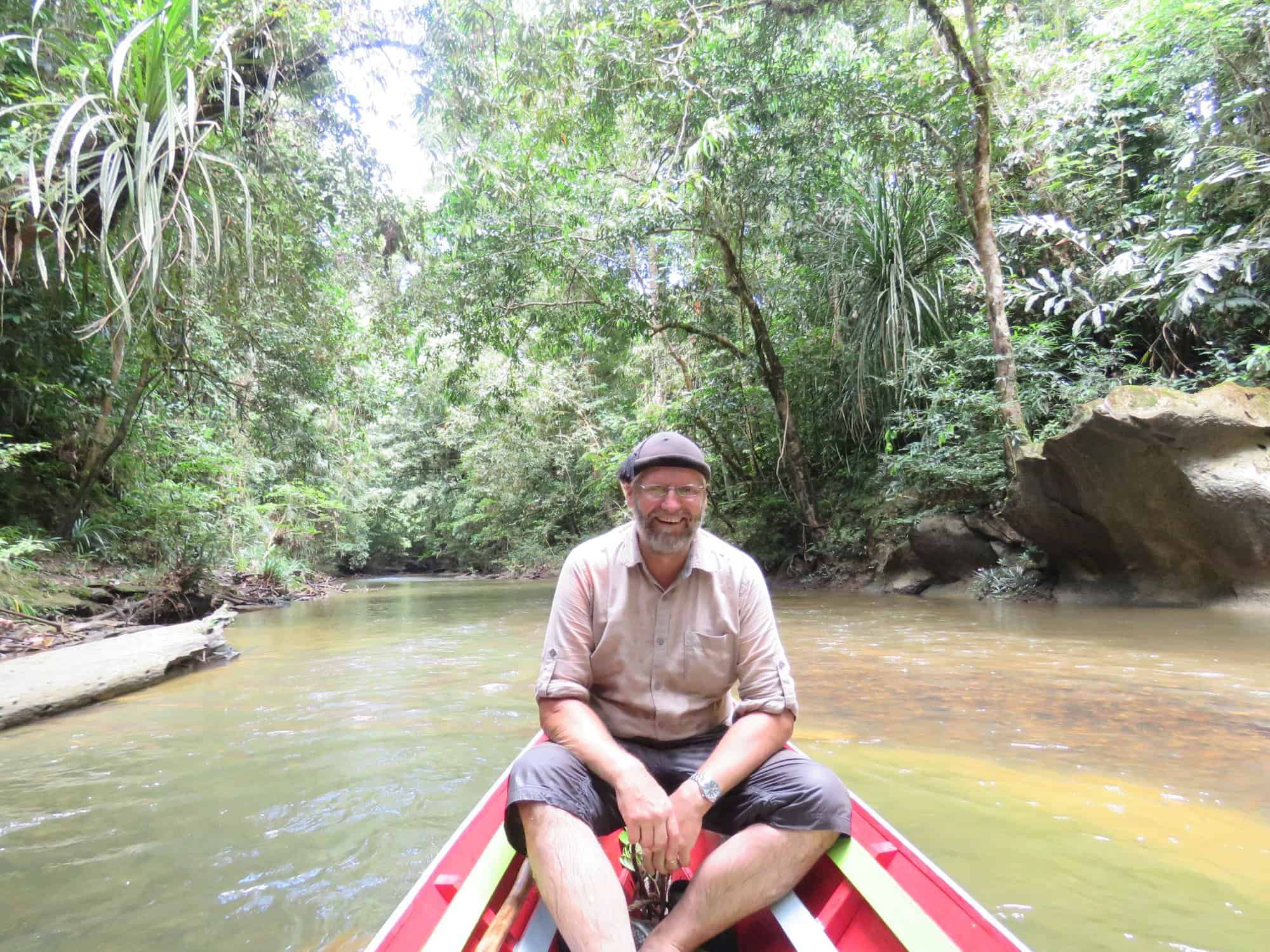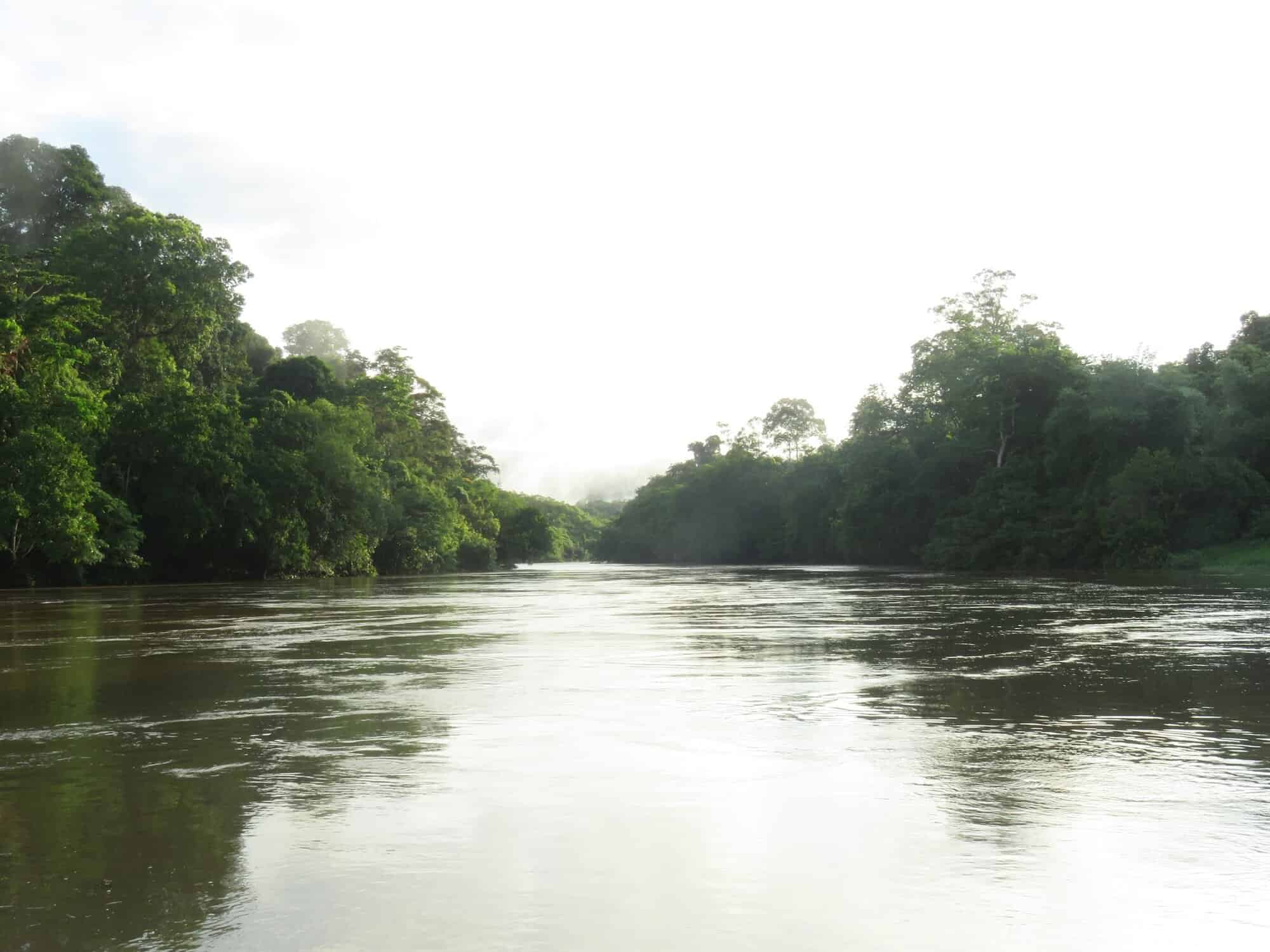 The journey to the Joloi Valley is already an unforgettable experience. But the real jungle tour begins on the second day. We choose small, motorized canoes, per 2 guest we need one so called “Jis”. We travel upstream for a long time, upriver, deeper and deeper into the jungle. At the beginning, trees line the banks, and you’re still exposed to the hot tropical sun right at the equator. The further you venture into the outback, the more the trees close the canopy over the river, and you travel through the jungle like a tunnel. The watercourse narrows, and you must navigate around rocks, trees, and sandbanks in the riverbed. Later, the river becomes so small that the boat repeatedly runs aground, especially tree trunks and branches of large trees lying in the riverbed, obstructing free passage. Depending on the water level, you must get out of the boat repeatedly, push, pull, and sometimes walk short distances in the water. After a long day, rocks and a few small huts come into view. We are now close to “Villa Corona.”.