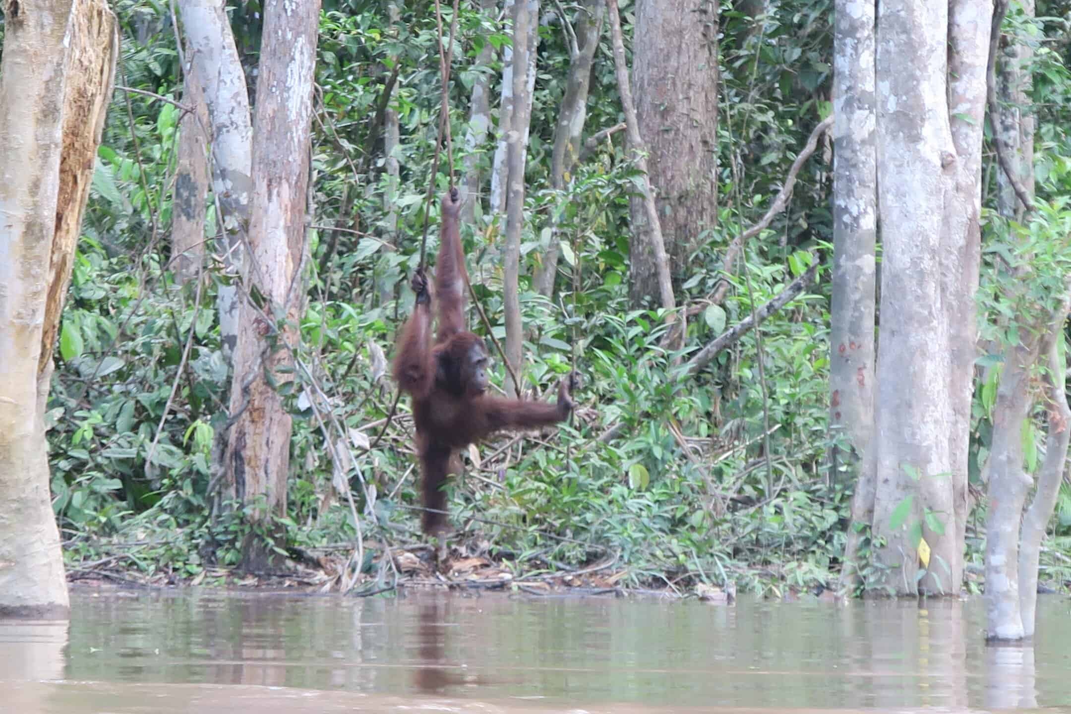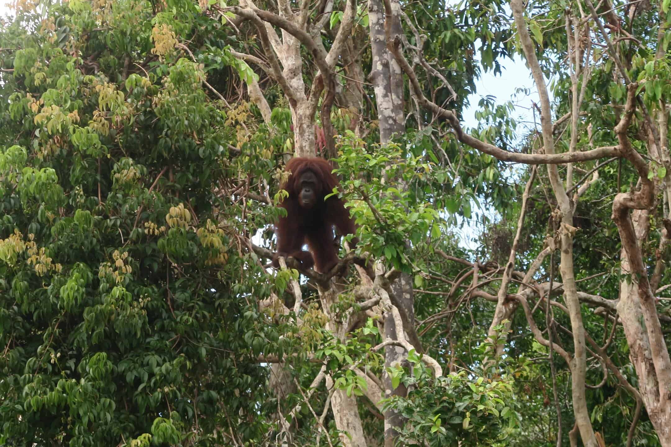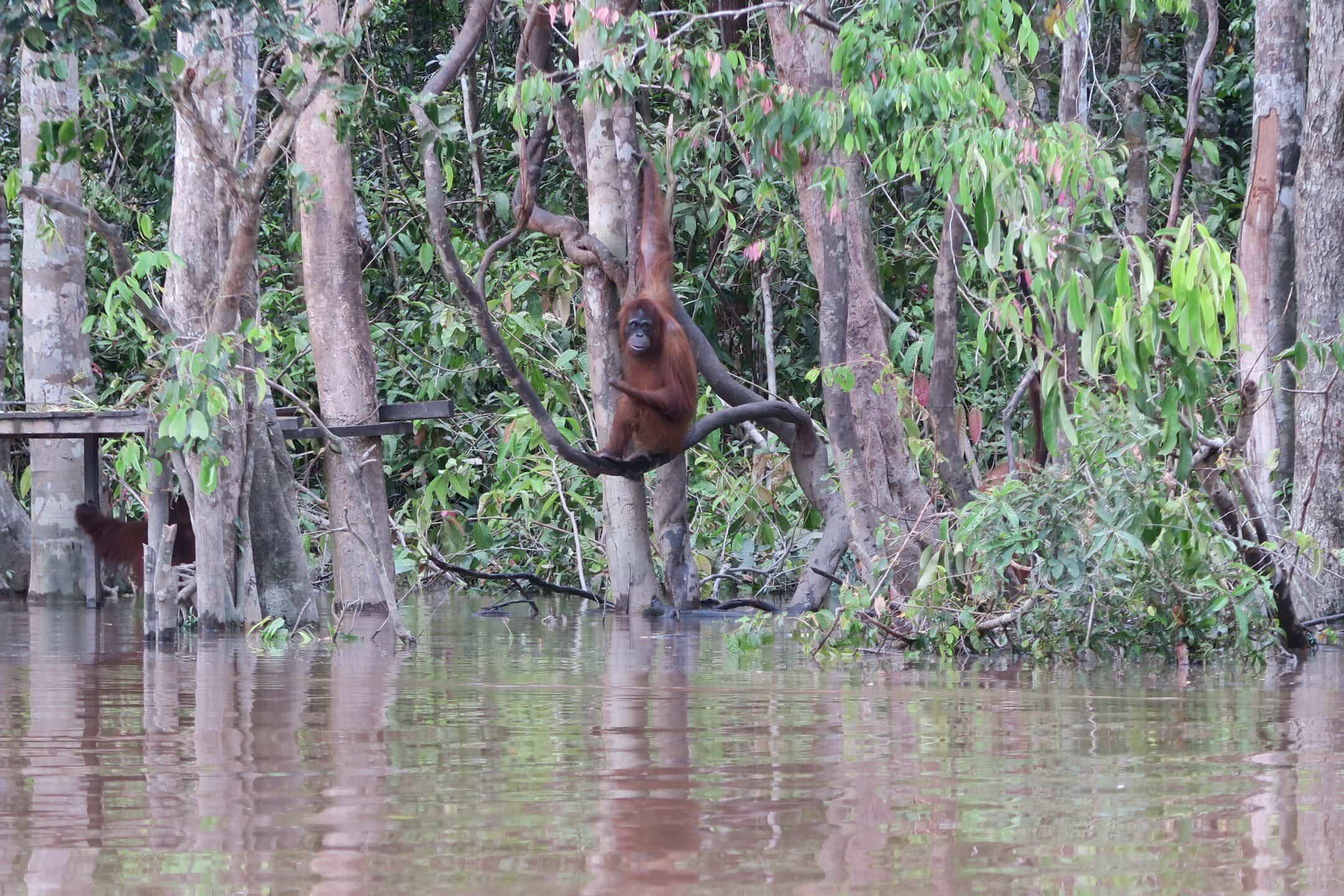 Tourists can book a tour on small boats to circling this pre-release island and watch Orang Utans in their natural environment and more or less natural behaviour. Our guides can never predict how many and which individuals you will see, but so far, we had never heard about tourists coming back from this half-day trip without seeing at least a handful of Orang Utans.