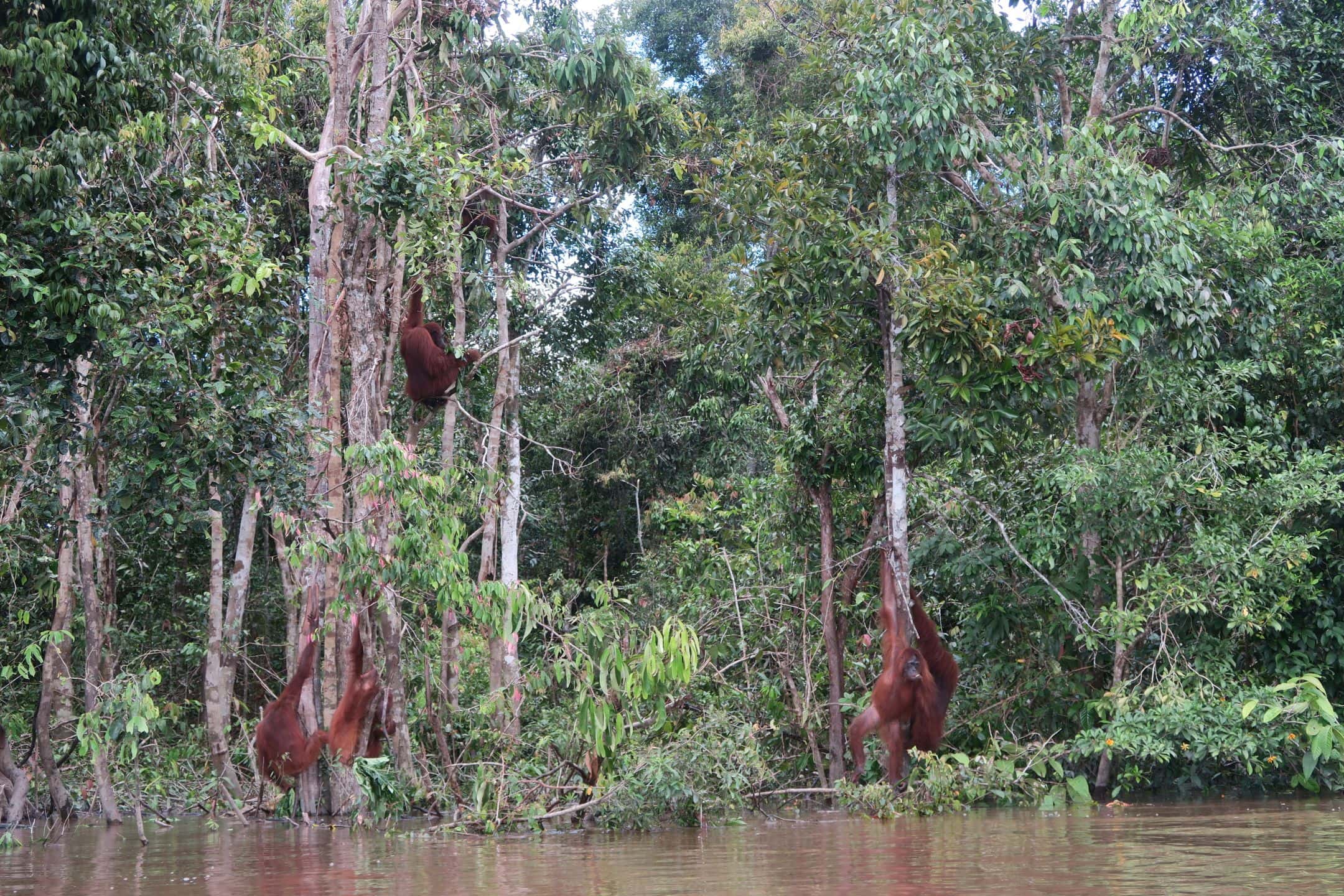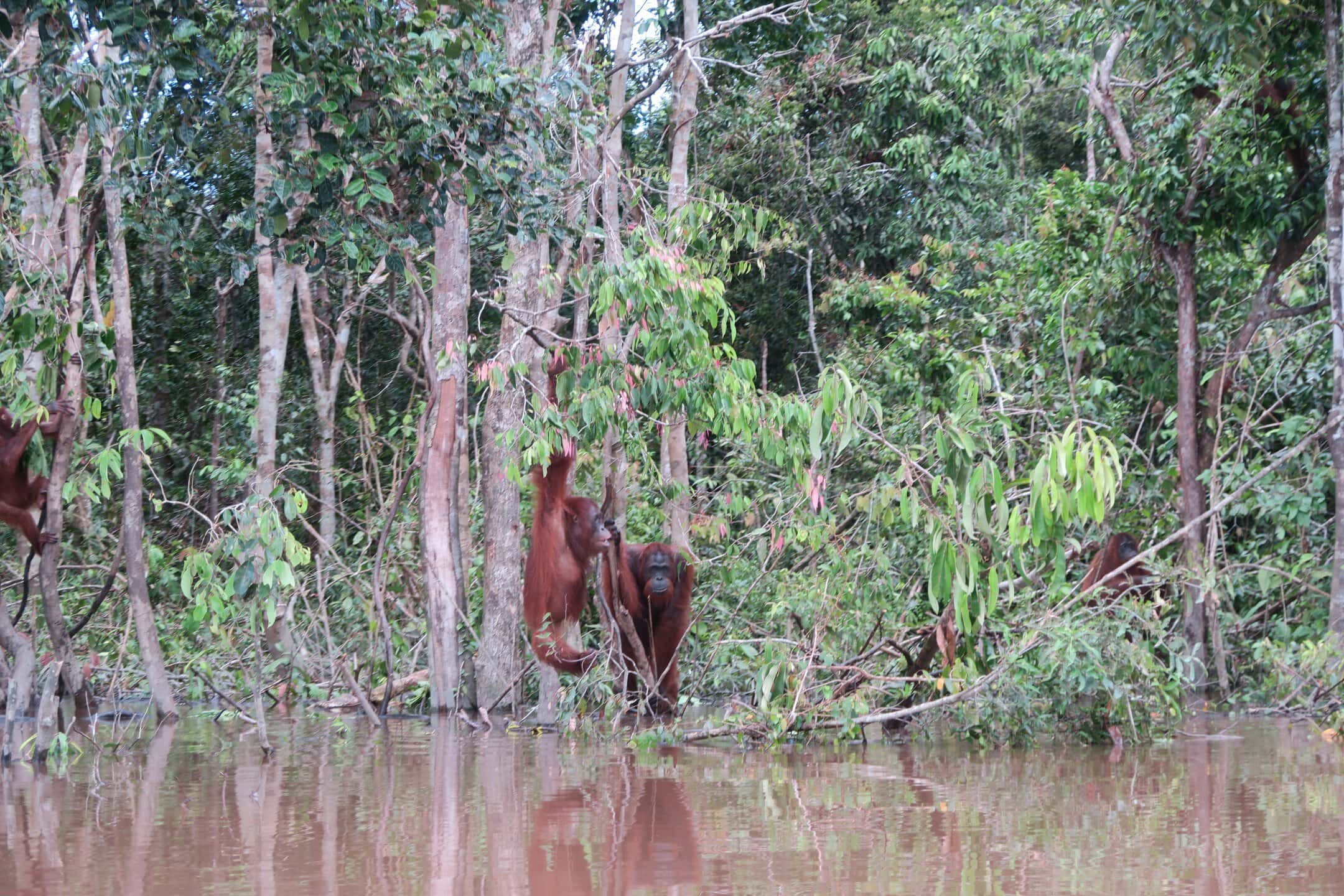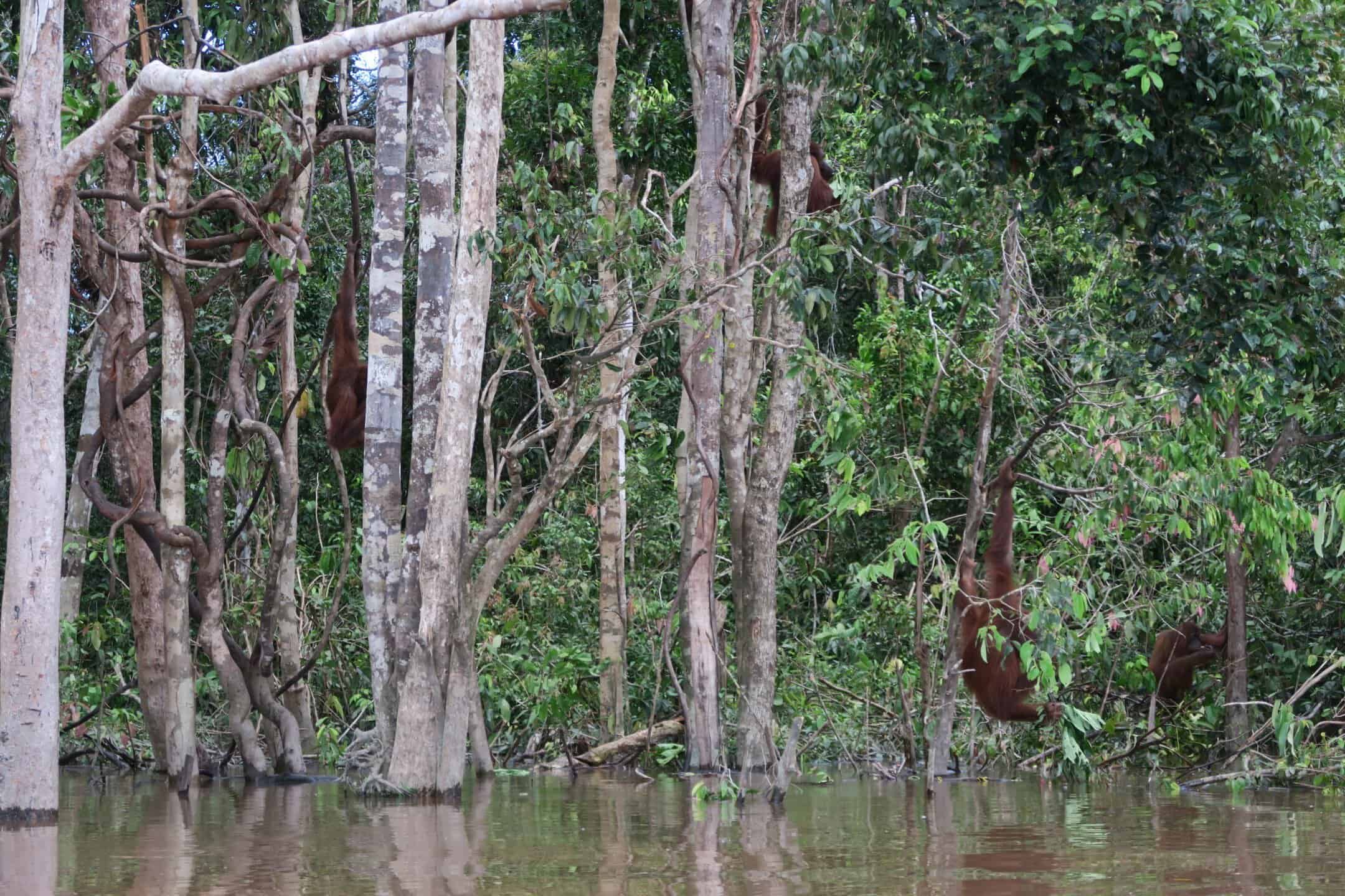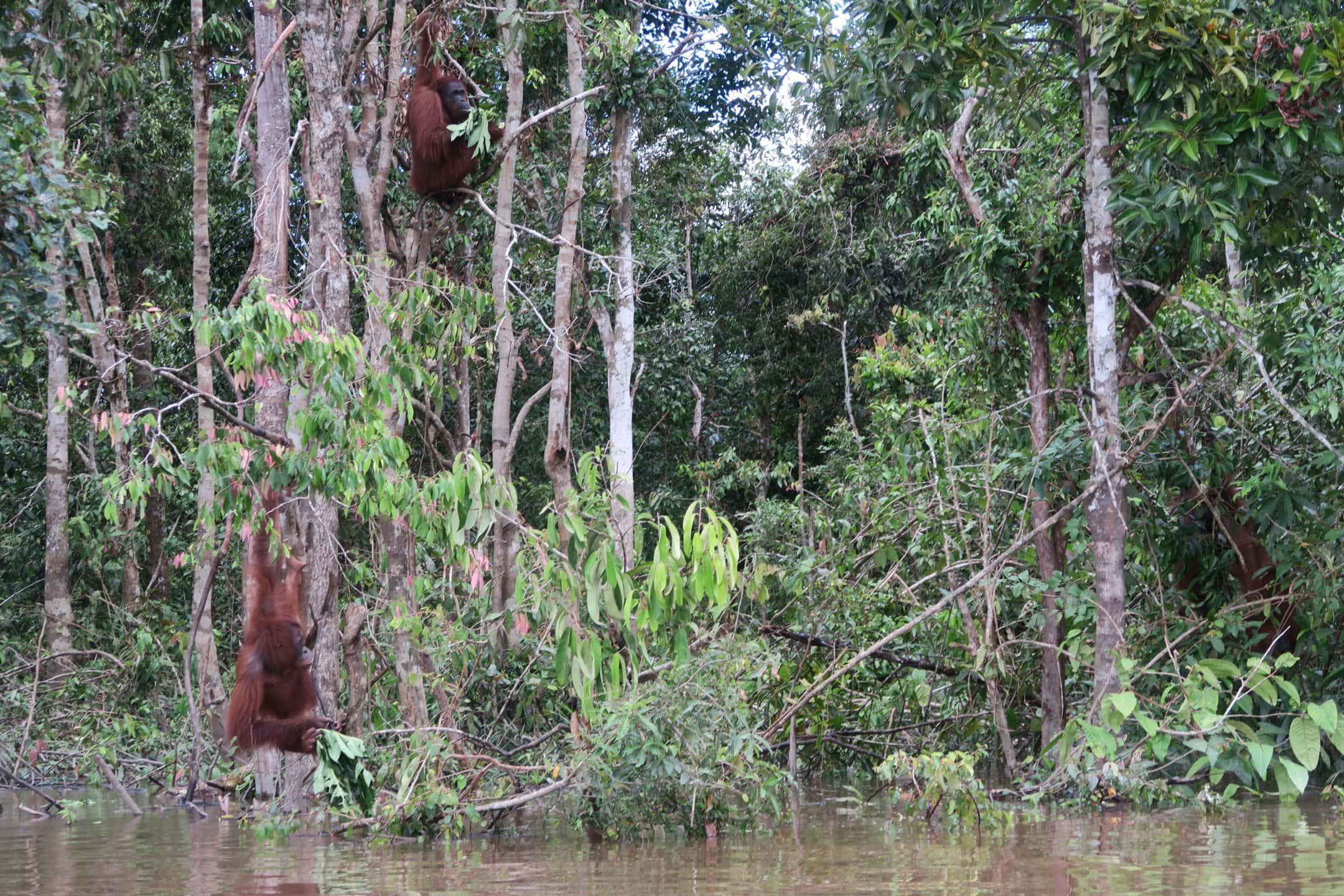 Tourists can book a tour on small boats to circling this pre-release island and watch Orang Utans in their natural environment and more or less natural behaviour. Our guides can never predict how many and which individuals you will see, but so far, we had never heard about tourists coming back from this half-day trip without seeing at least a handful of Orang Utans.